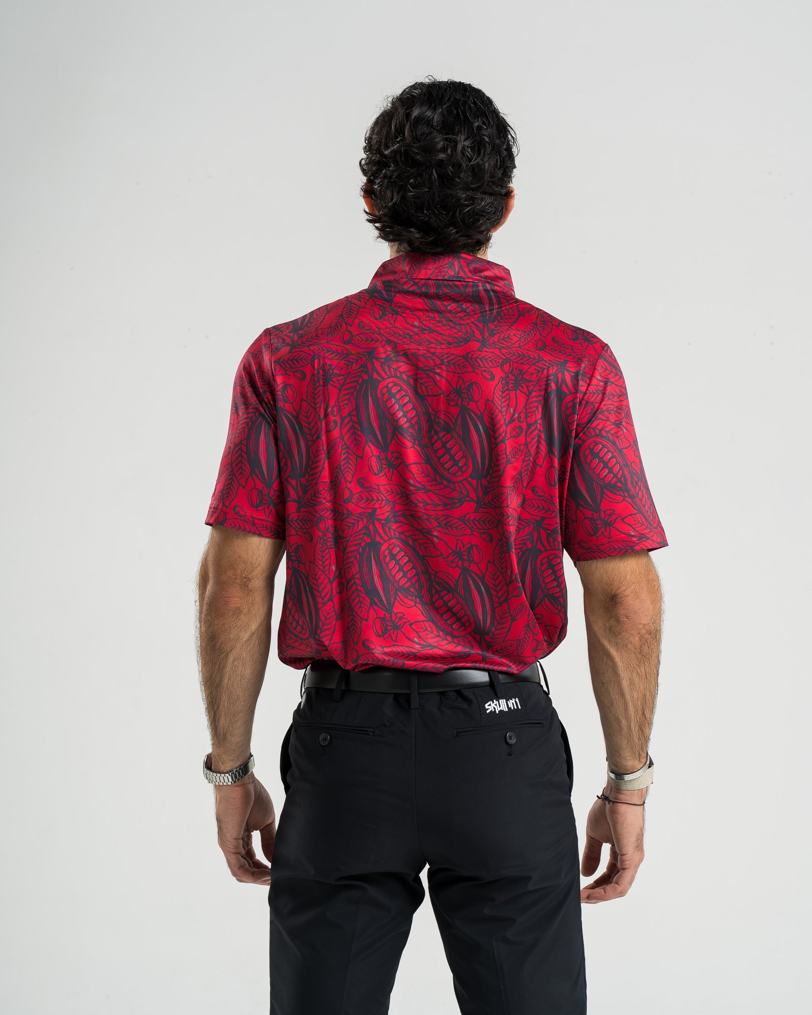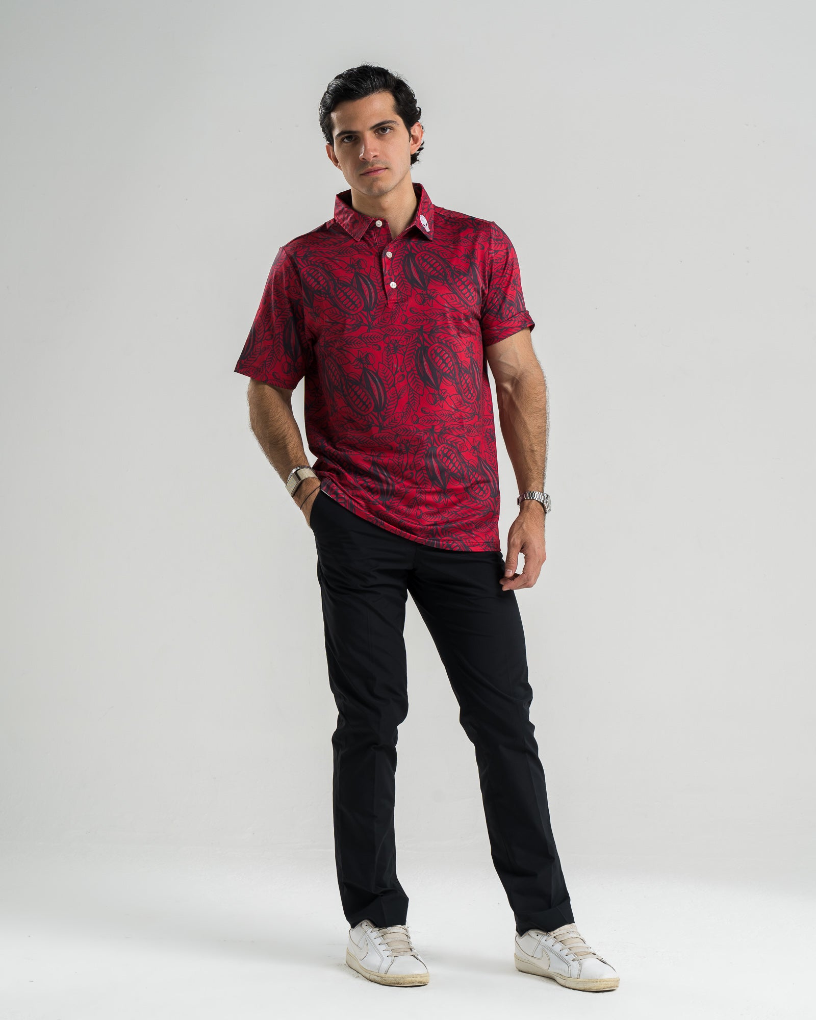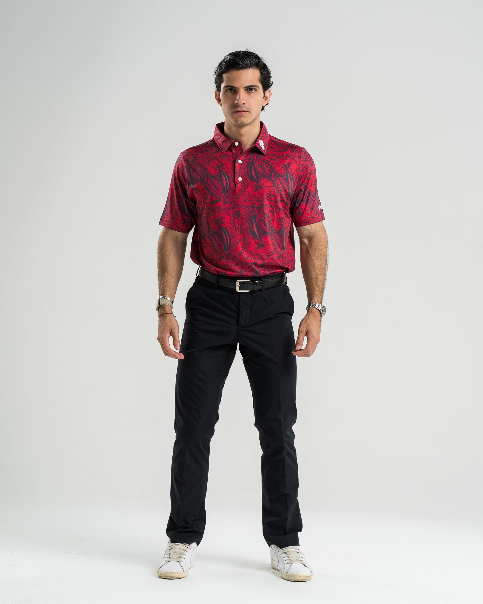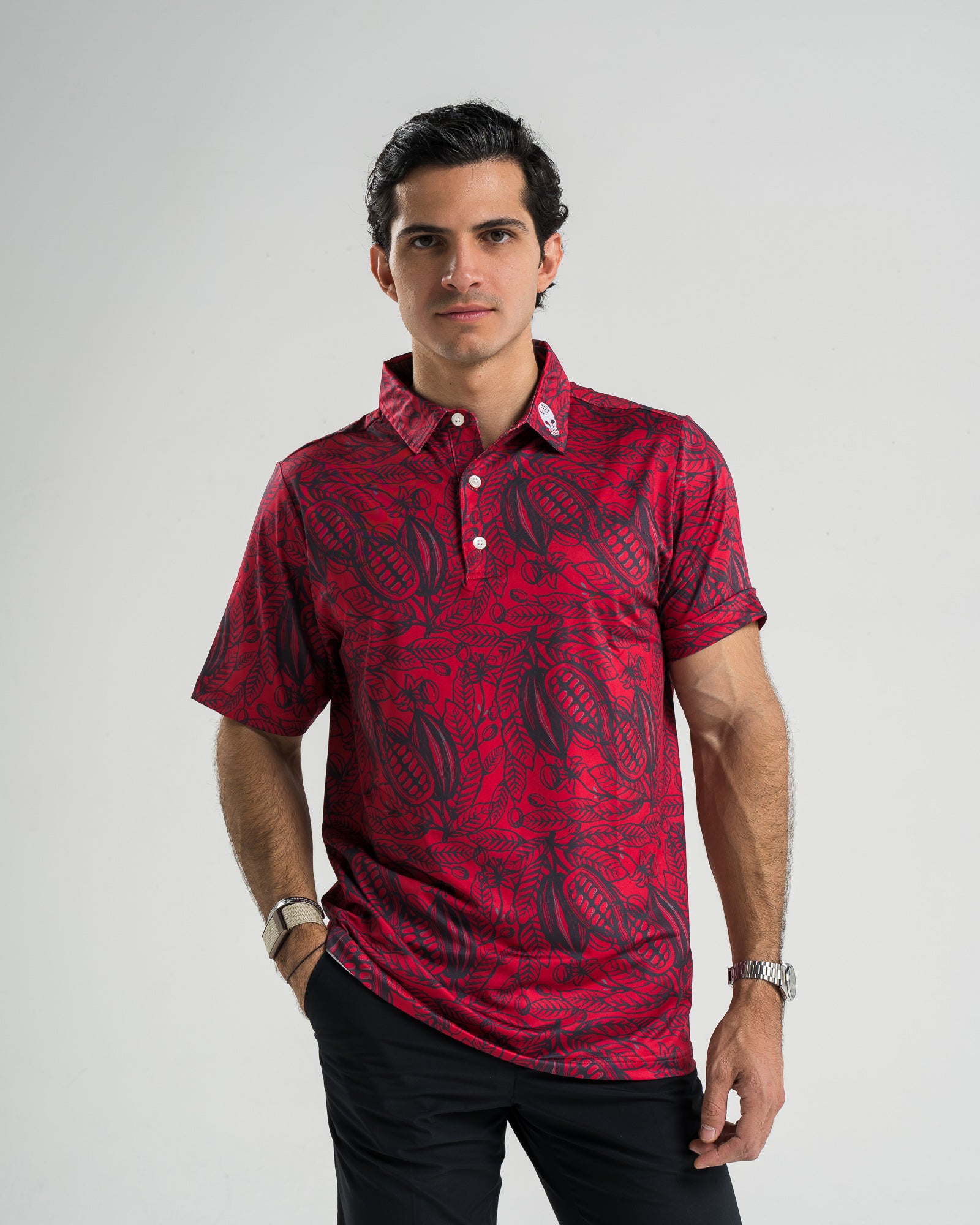 Introduce un toque de vitalidad y pasión a tu atuendo de golf con nuestra nueva playera. Presentando un vibrante color rojo y un estampado de cacaos distintivo, esta pieza añade un giro moderno y audaz a tu clóset deportivo. Perfecta para expresar tu estilo único mientras te destacas en el campo de golf, esta playera es una elección elegante y dinámica para los amantes del golf que buscan refrescar su colección de ropa deportiva.