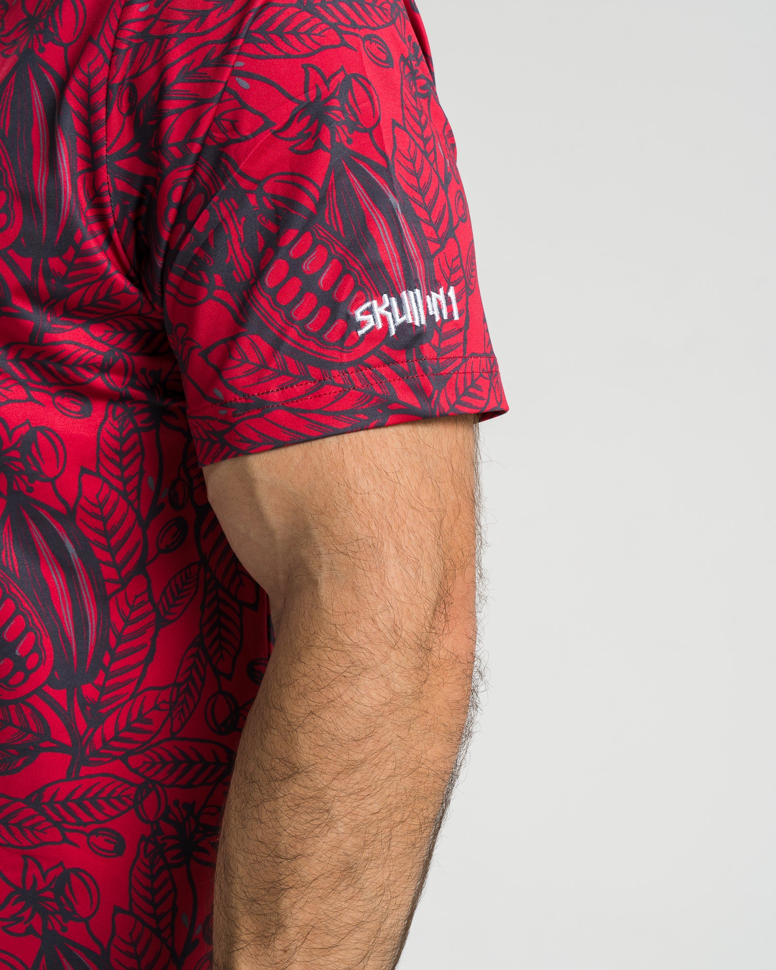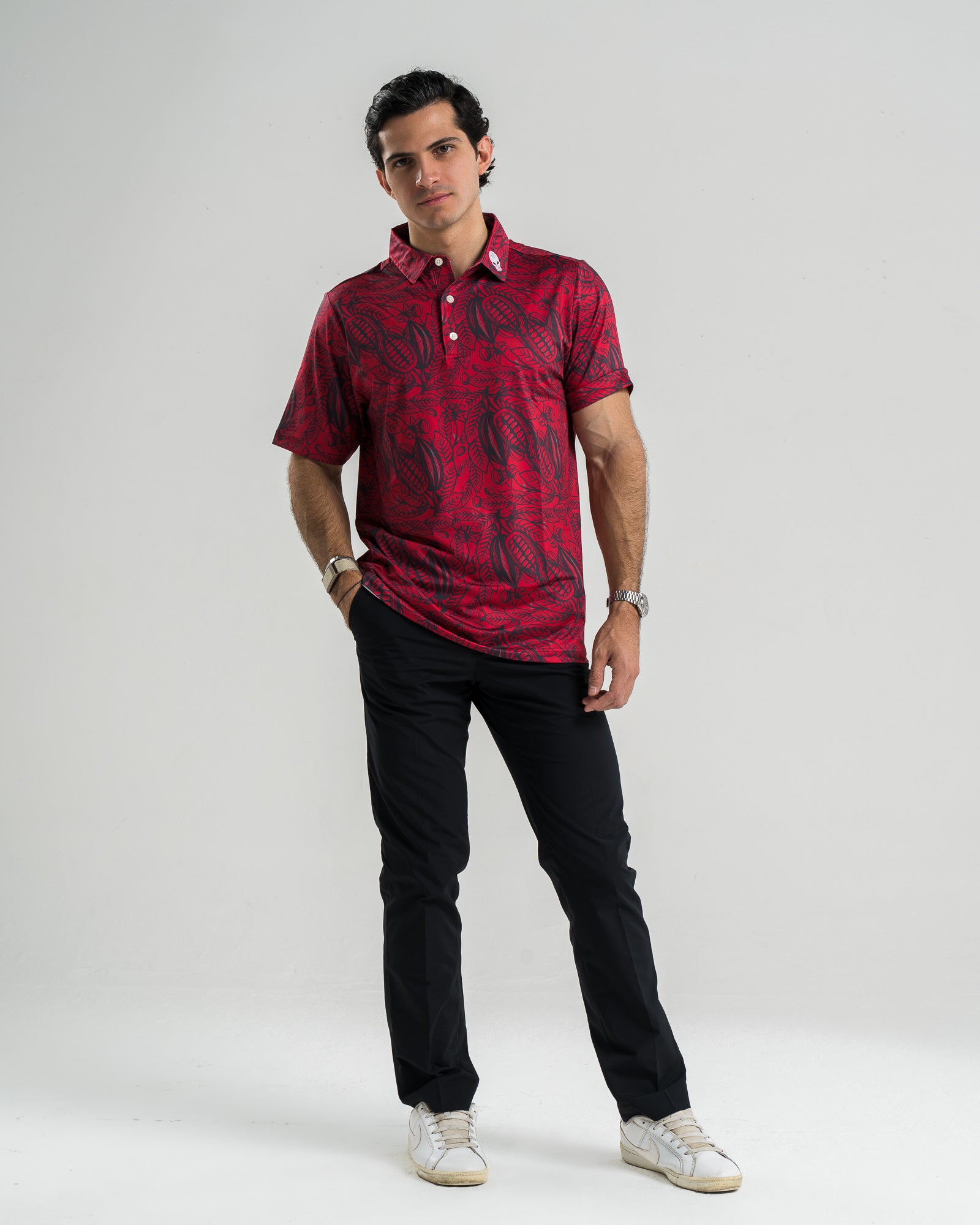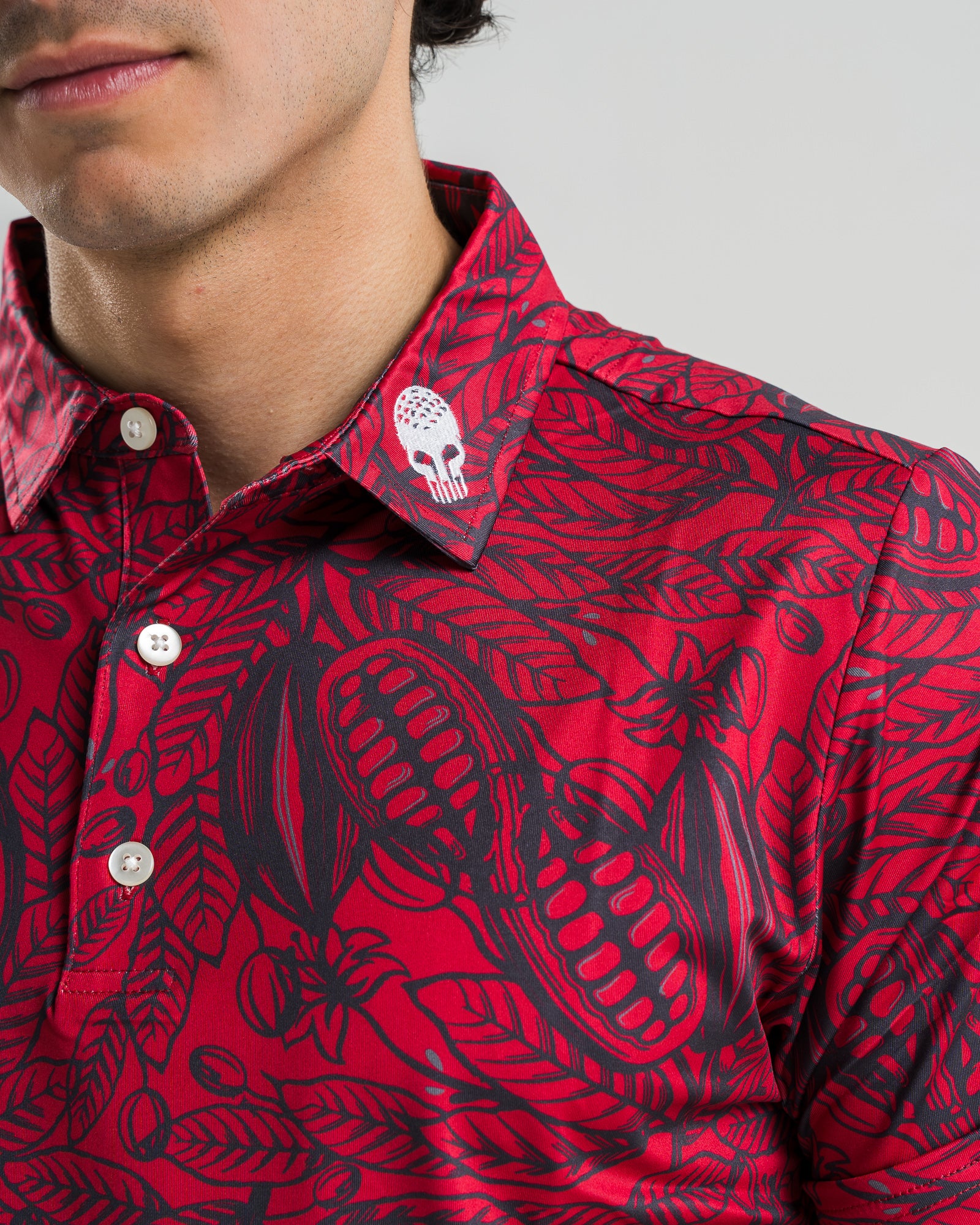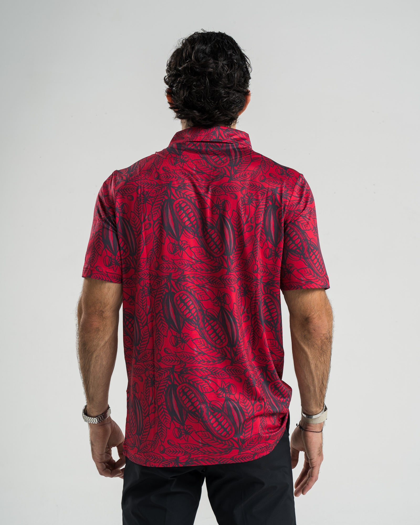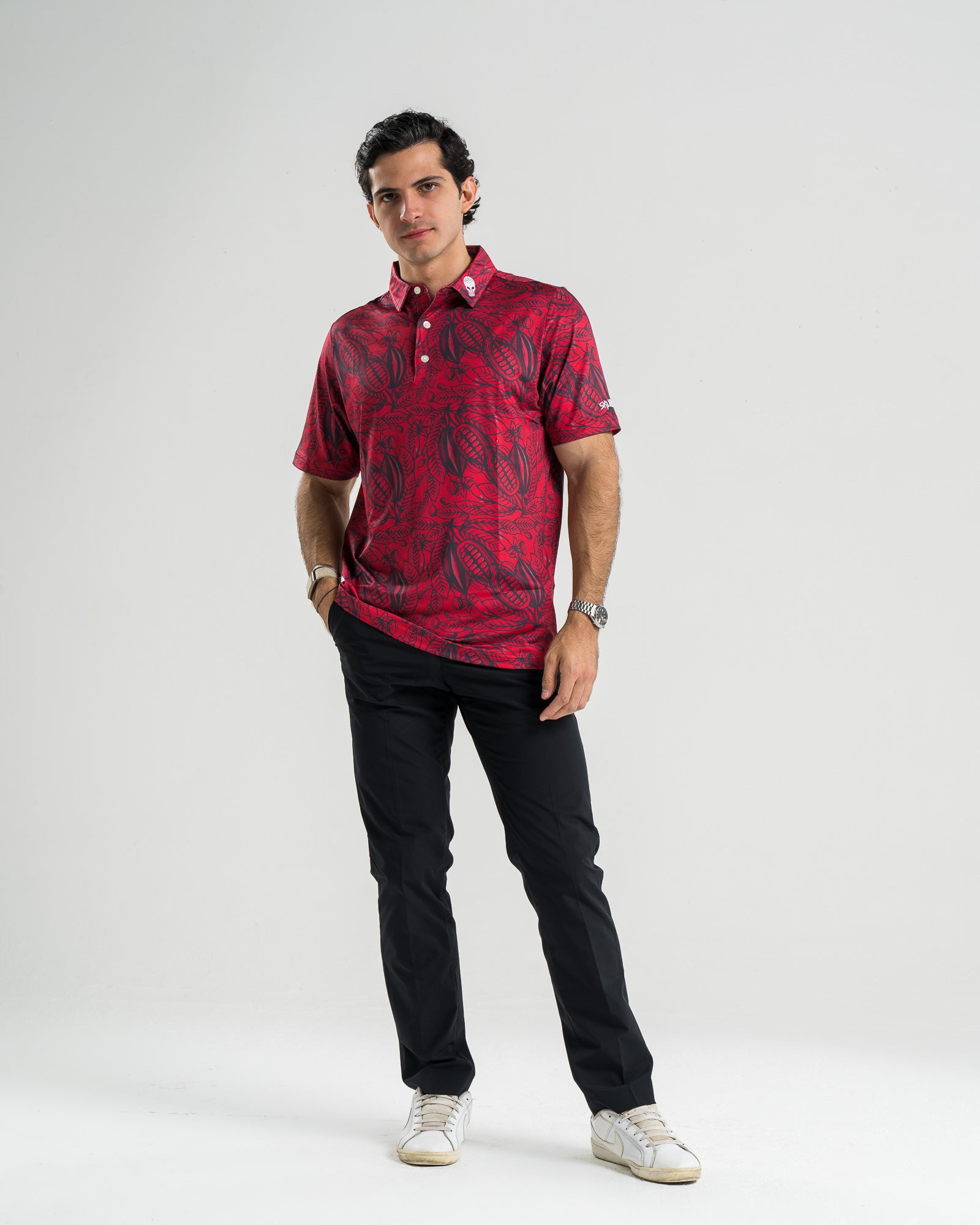 Introduce un toque de vitalidad y pasión a tu atuendo de golf con nuestra nueva playera. Presentando un vibrante color rojo y un estampado de cacaos distintivo, esta pieza añade un giro moderno y audaz a tu clóset deportivo. Perfecta para expresar tu estilo único mientras te destacas en el campo de golf, esta playera es una elección elegante y dinámica para los amantes del golf que buscan refrescar su colección de ropa deportiva.