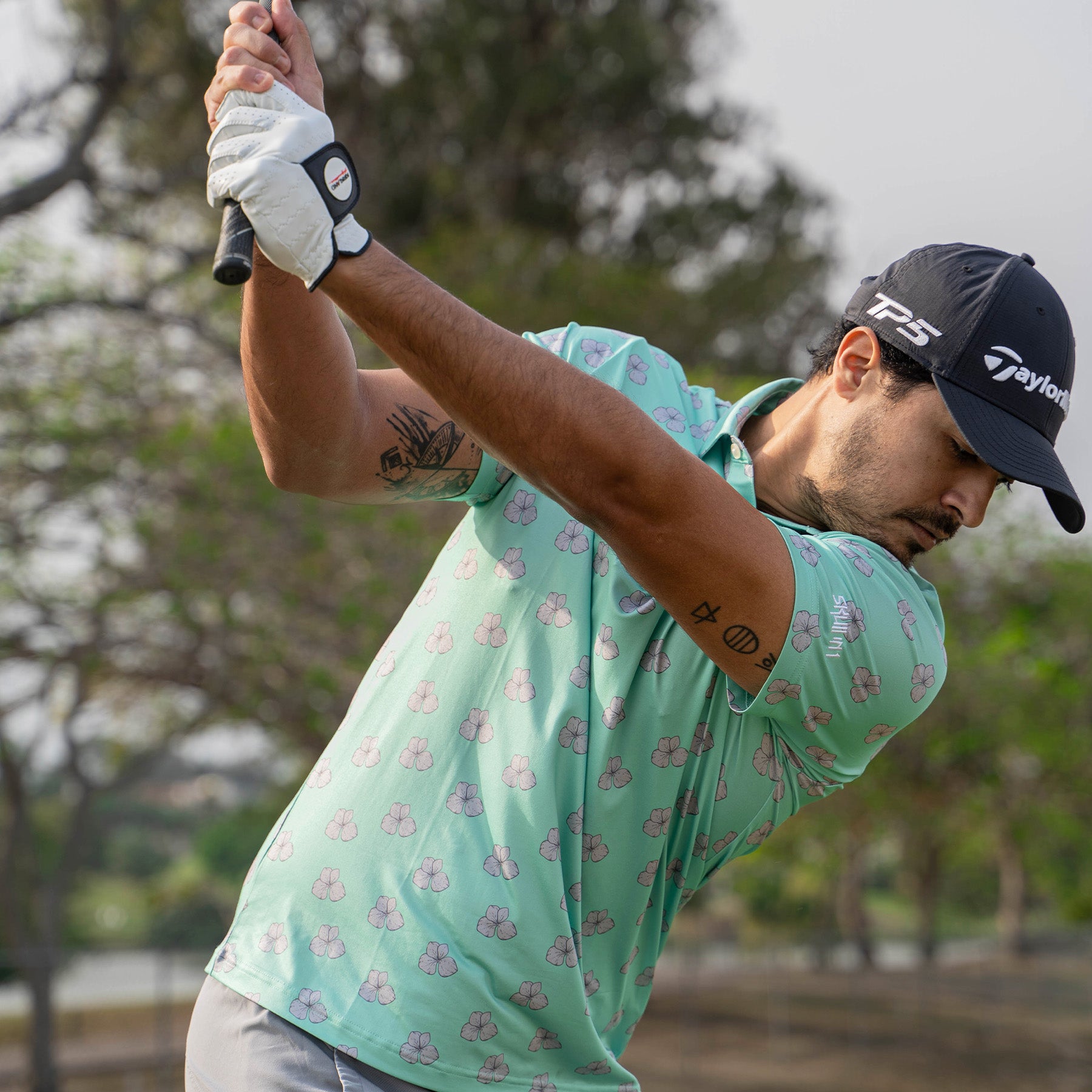 Actualiza tu vestuario de golf con nuestra nueva playera en un refrescante tono verde menta. El estampado discreto de hojas grises le añade un toque de elegancia y naturalidad a esta prenda. Perfecta para aquellos que desean destacar de manera sutil y sofisticada sin sacrificar la funcionalidad, esta playera es una elección versátil y moderna para los amantes del golf que buscan renovar su clóset con un diseño distintivo pero práctico. ¡Es hora de darle un toque fresco y elegante a tu estilo en el campo con esta pieza única y versátil!