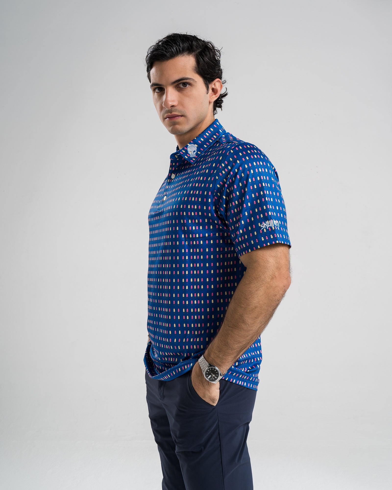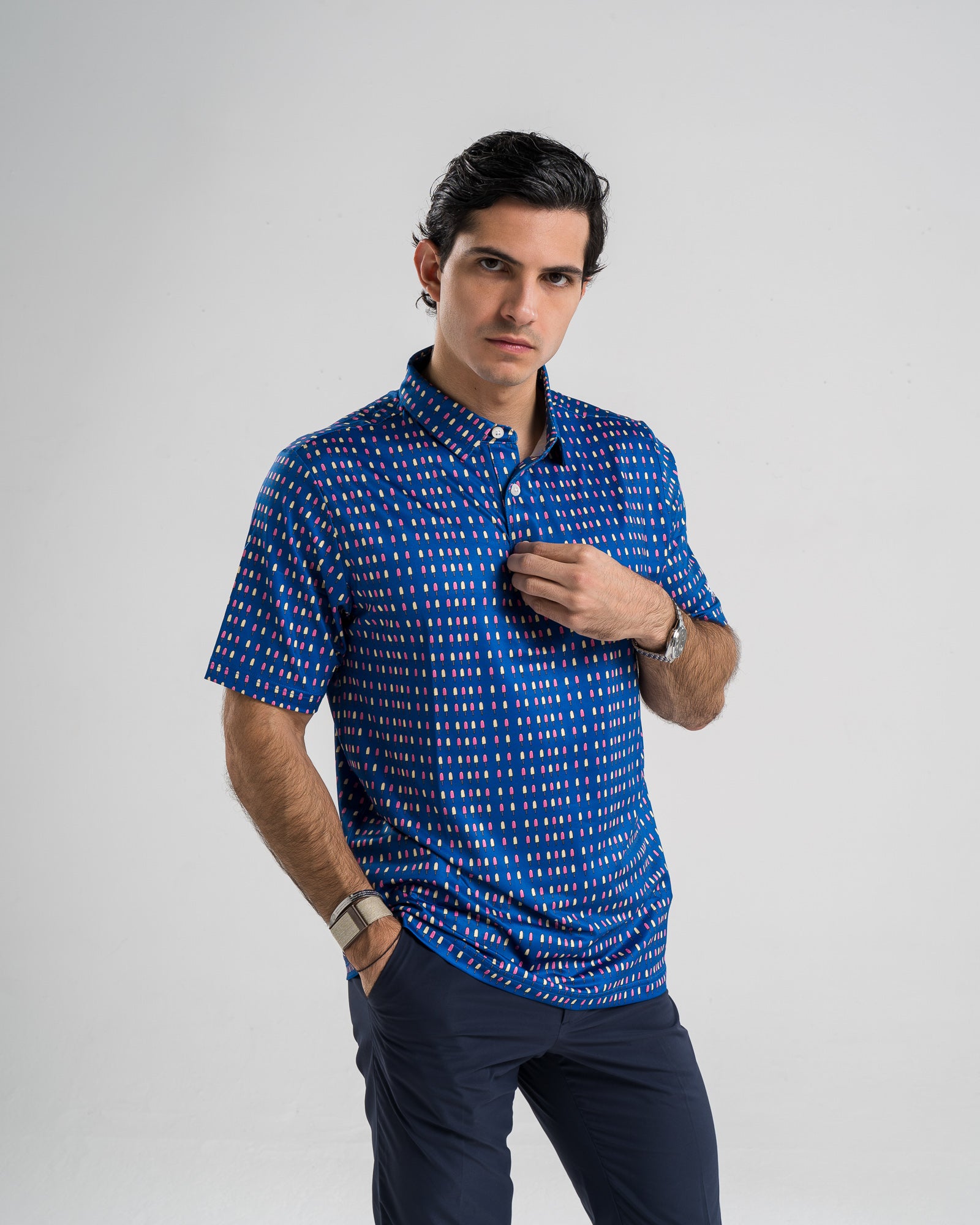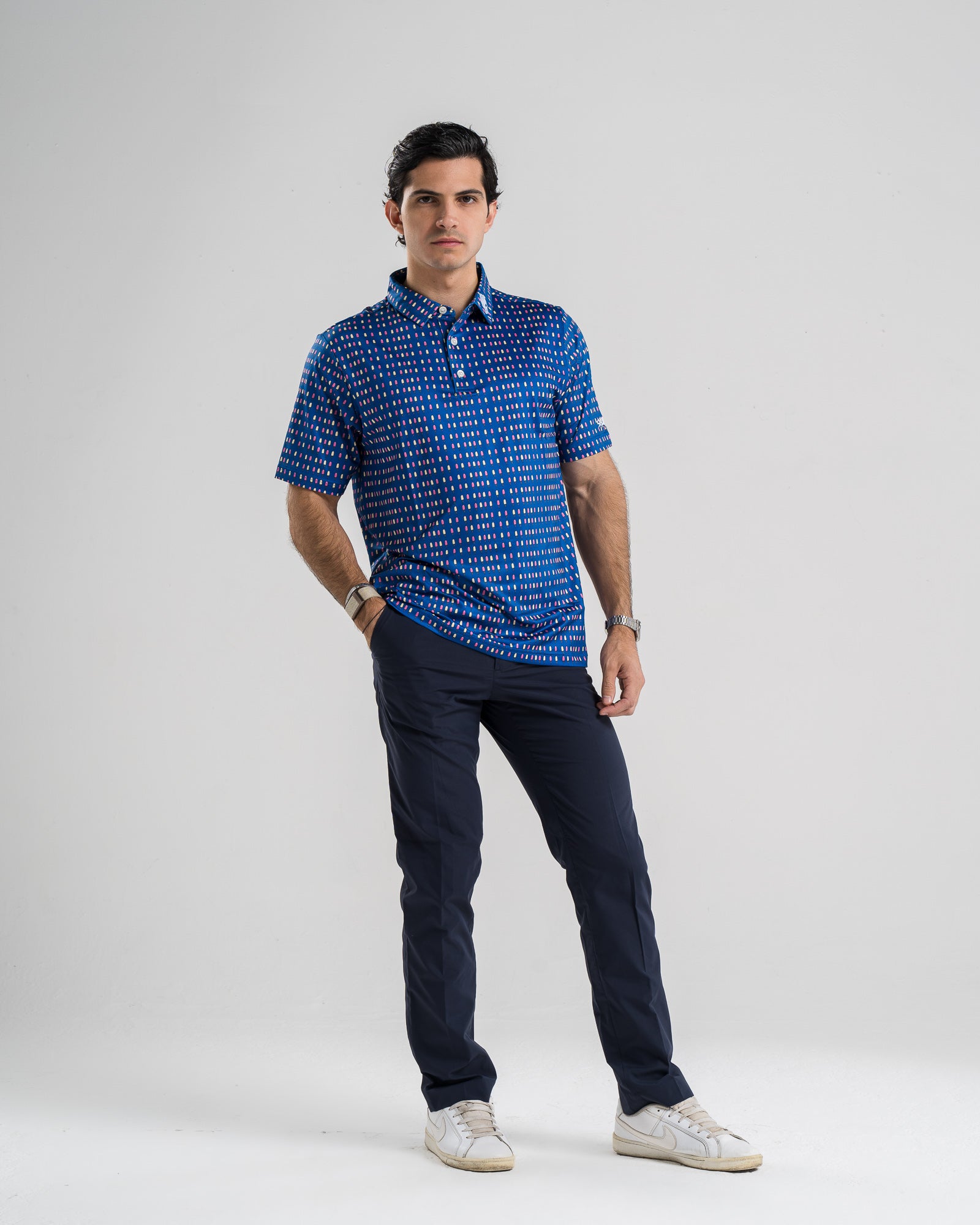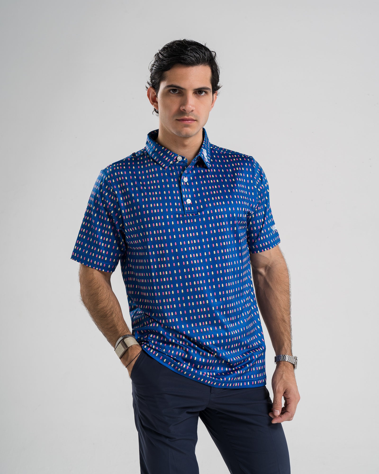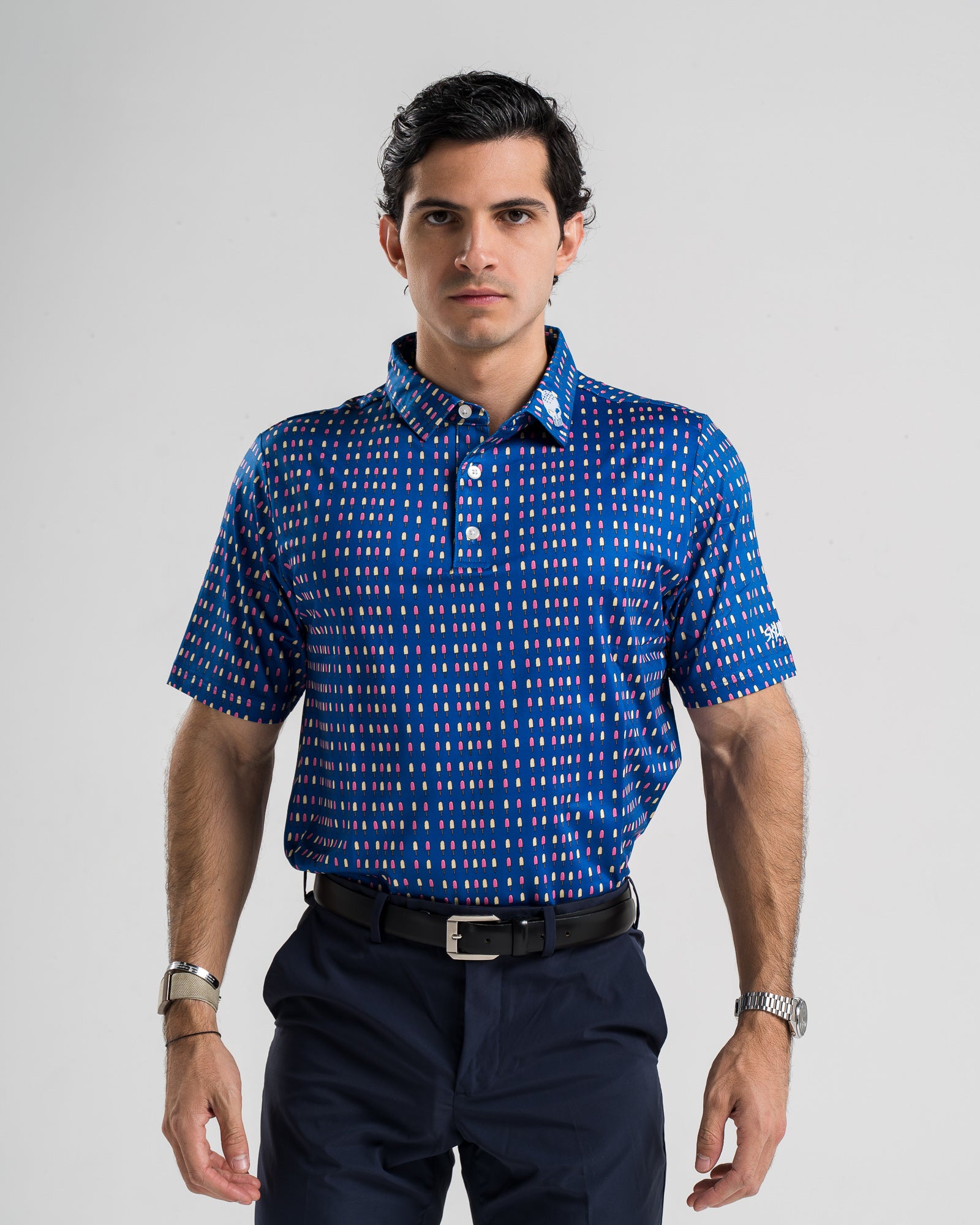 Actualiza tu estilo en el campo de golf con nuestra nueva playera en azul. Con un estampado de paletas que le añade un toque de frescura, esta playera es una opción perfecta para quienes desean destacar de manera sutil y moderna en el campo. Ideal para los amantes del golf que buscan añadir un toque de color y originalidad a su clóset sin sacrificar la elegancia y la versatilidad. ¡Es hora de renovar tu clóset con esta pieza única y funcional!