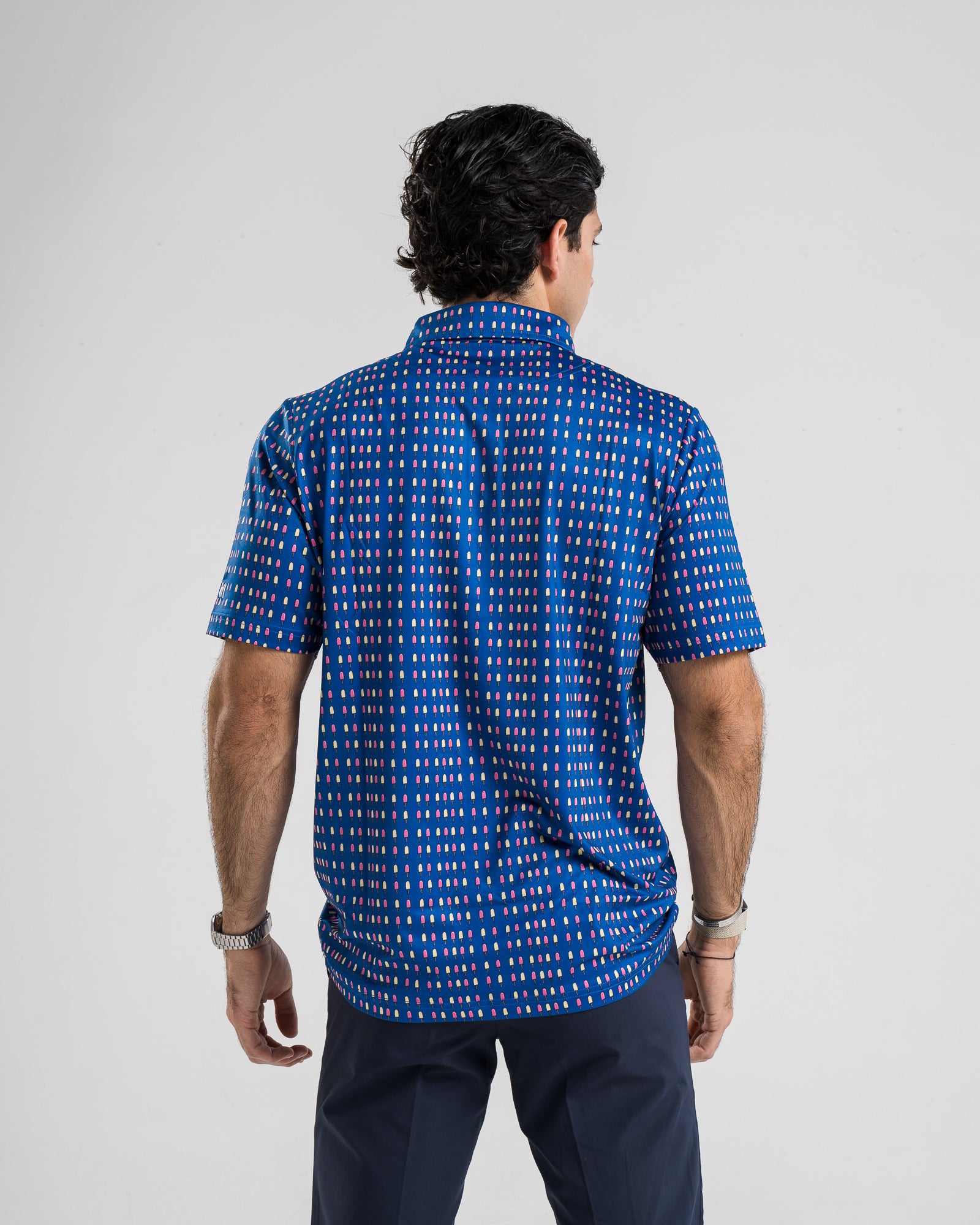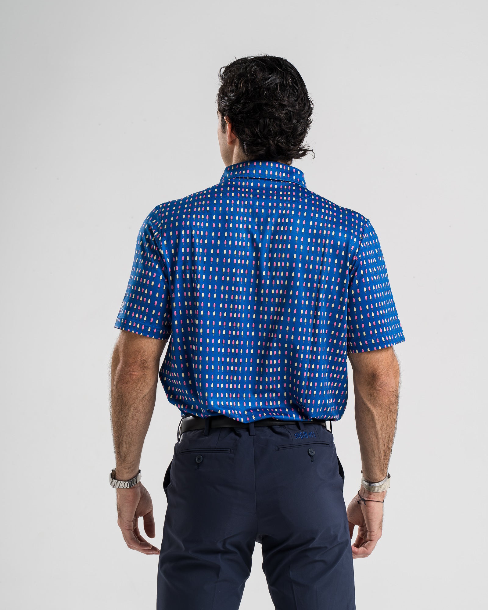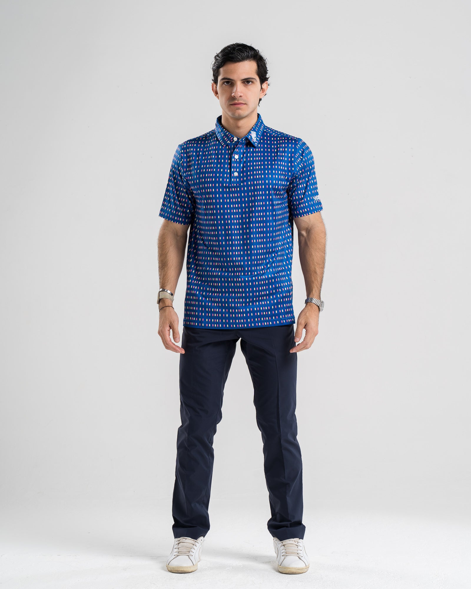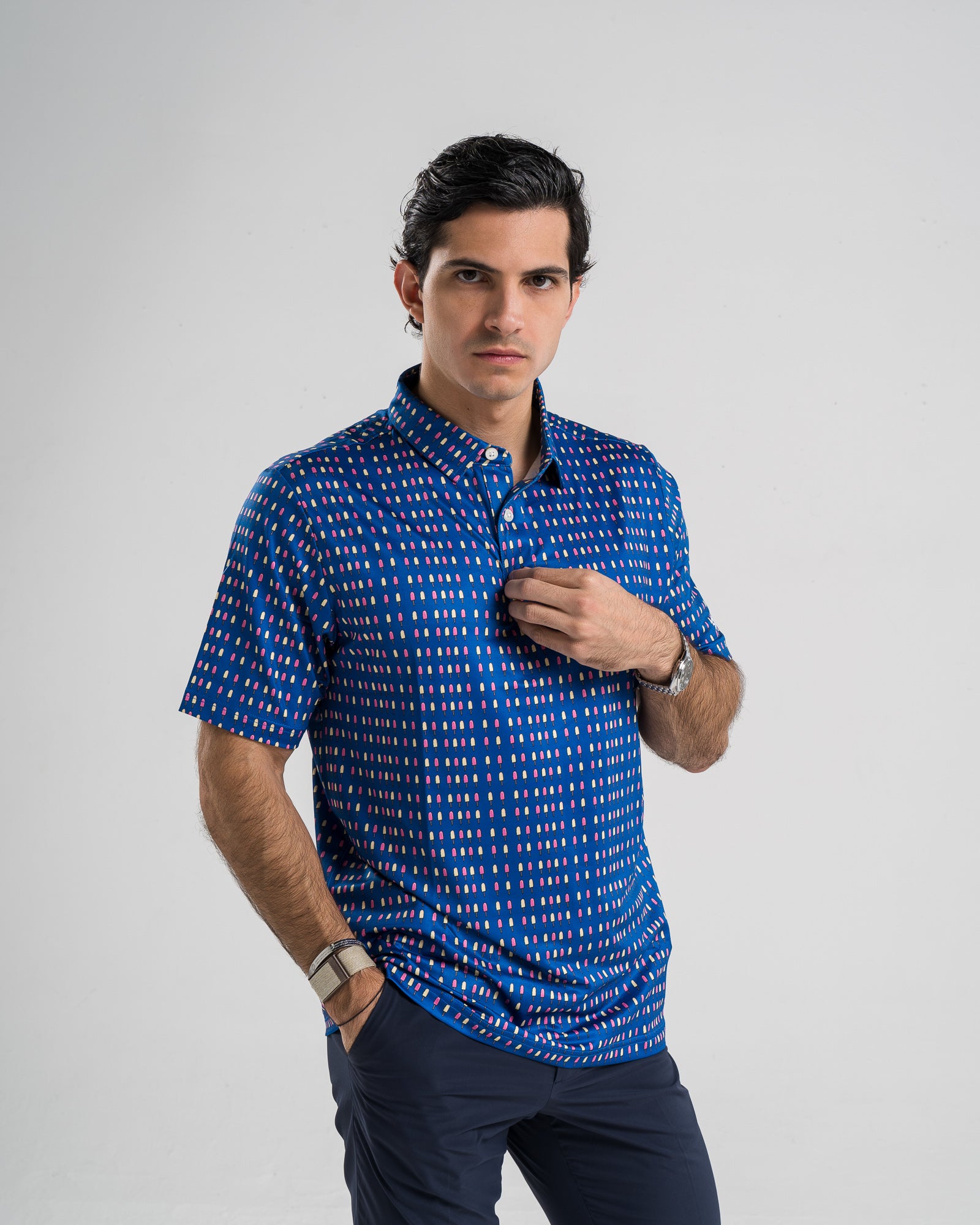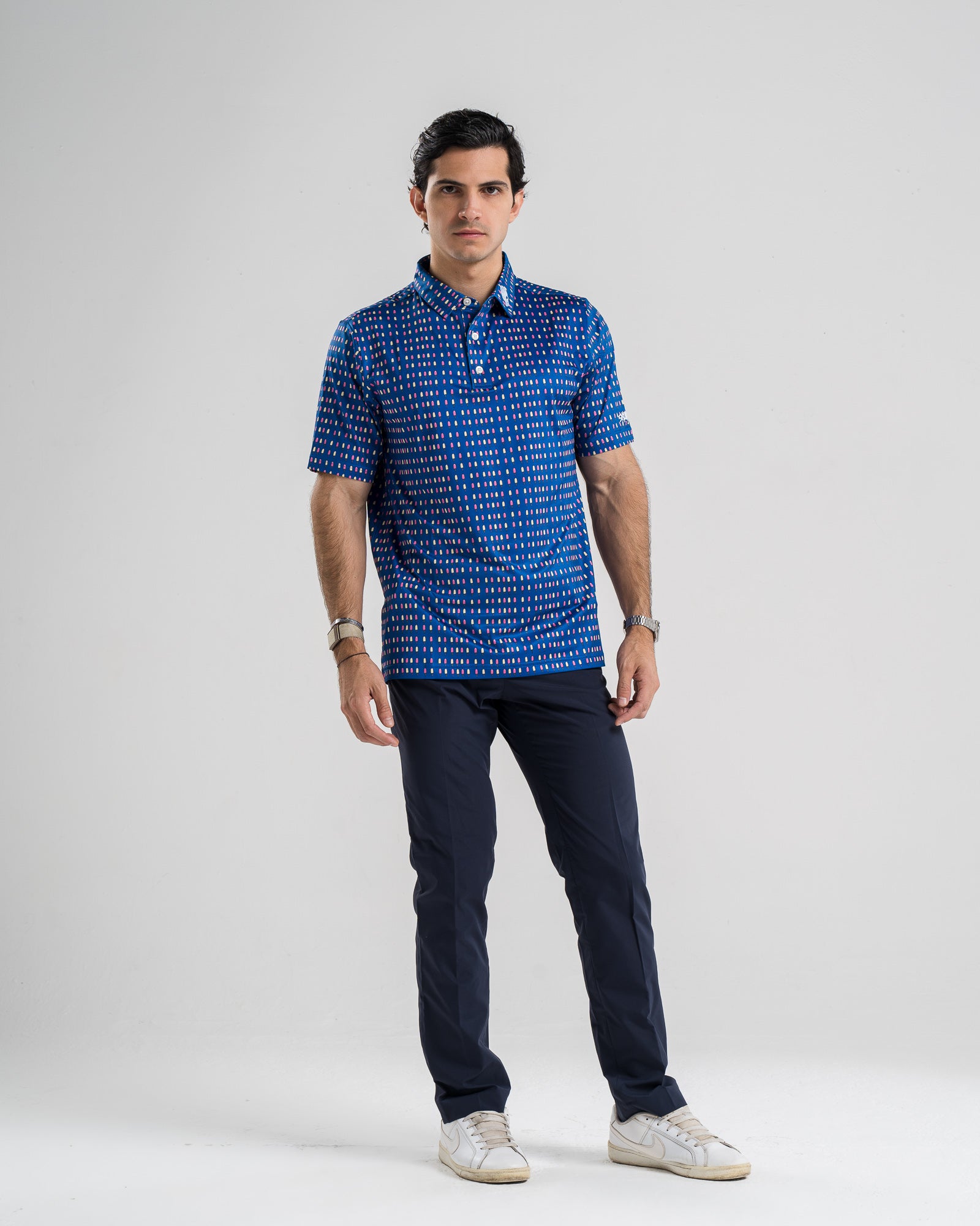 Actualiza tu estilo en el campo de golf con nuestra nueva playera en azul. Con un estampado de paletas que le añade un toque de frescura, esta playera es una opción perfecta para quienes desean destacar de manera sutil y moderna en el campo. Ideal para los amantes del golf que buscan añadir un toque de color y originalidad a su clóset sin sacrificar la elegancia y la versatilidad. ¡Es hora de renovar tu clóset con esta pieza única y funcional!