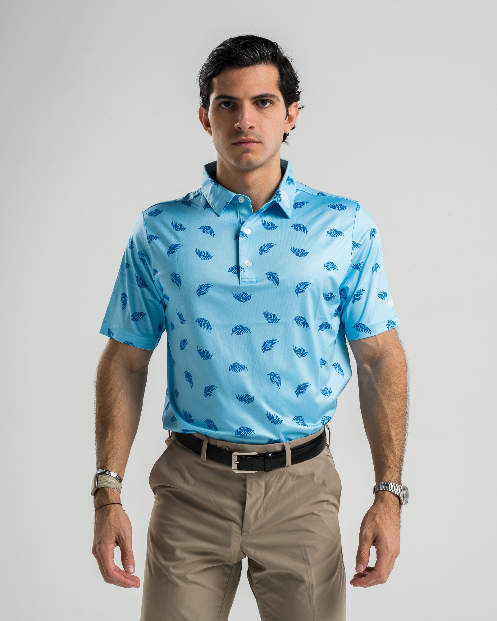¡Deja que la naturaleza te acompañe en cada golpe con nuestra nueva playera Blue on blue leafs! Cada movimiento te conecta con la esencia de la naturaleza. Es hora de añadir un toque de magia a tu clóset y dejar que tus juegos de golf se llenen de la energía de la naturaleza.